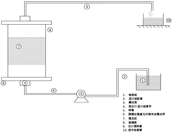 使用玻璃柱研究活性橙84染料吸附到活性炭的动态行为,如图2所示。柱的内径和长度的测量值分别为2.2和18cm。将已知量的吸附剂加入到柱中,并用两层棉绒支撑。用计算量的活性炭填充柱以获得特定的床高度。通过变速蠕动泵维持流入溶液的流速。实验工作在室温和pH 5.9下进行,这是染料溶液的pH值。